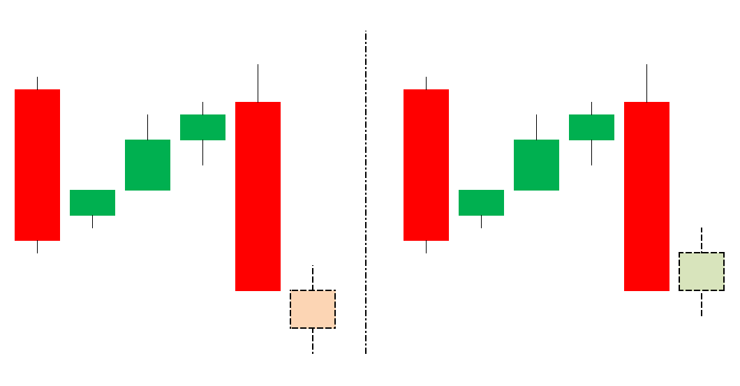 | 5本目 | 強い陽線で1本目の高値を更新 | 強い陰線で1本目の安値を更新 |